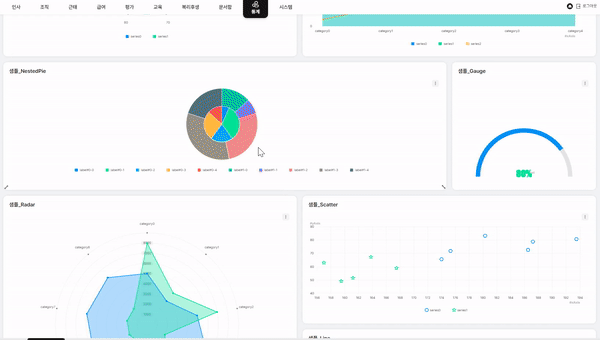 많이 사용하는 기능인 '복무 신청', '복리후생' 신청 화면이 직관적으로 한눈에 확인할 수 있도록 설계되어 신청 관련한 문의가 많이 발생하지 않고 있습니다. 3️⃣ 맞춤형 대시보드 및 조직장 제공 화면