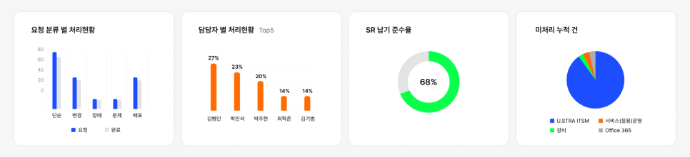 서비스 요청 처리 현황 조회• 담당자별 업무 현황 한눈에 파악