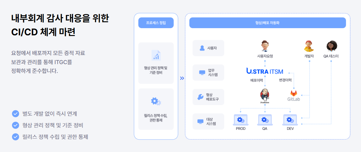AJ네트웍스의 U.STRA ITSM 도입은 다양한 산업 분야의 비즈니스를 운영하는 기업으로서, IT 프로세스 표준화를 수립하는 중요한 전환점이 되었습니다. 요청부터 배포까지 모든 과정을 체계적으로 관리하고 증적 자료를 효율적으로 보관해, 내부회계감사 (ITGC)에도 더욱 효과적으로 대응할 수 있는 기반을 마련했습니다.